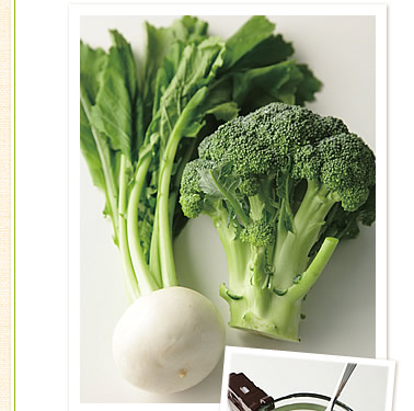 ブロッコリーには強い抗酸化力を持つビタミンA・C・Eのほか、特に強い抗酸化力を持つスルフォラファンという成分も豊富に含まれています。体内の解毒酵素を活性化させる働きがあり、発がん物質を無毒化するほどのパワーがあるともいわれます。抗酸化物質が体内の活性酸素を減少させると、免疫細胞が活性化して免疫力が高まります。かぶはビタミンCや消化酵素・アミラーゼが豊富。アミラーゼはブロッコリー特有のくせを消し、やさしい甘みをもたらしてくれる効果もあります。この2つの野菜の栄養をいっしょにとることで、代謝をスムーズに進めるために必要なビタミン類をバランスよくとることができます。