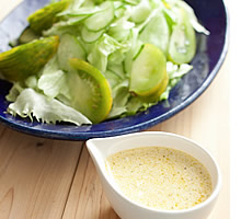 黄氷ドレッシングでグリーンゼブラとレタスのサラダ