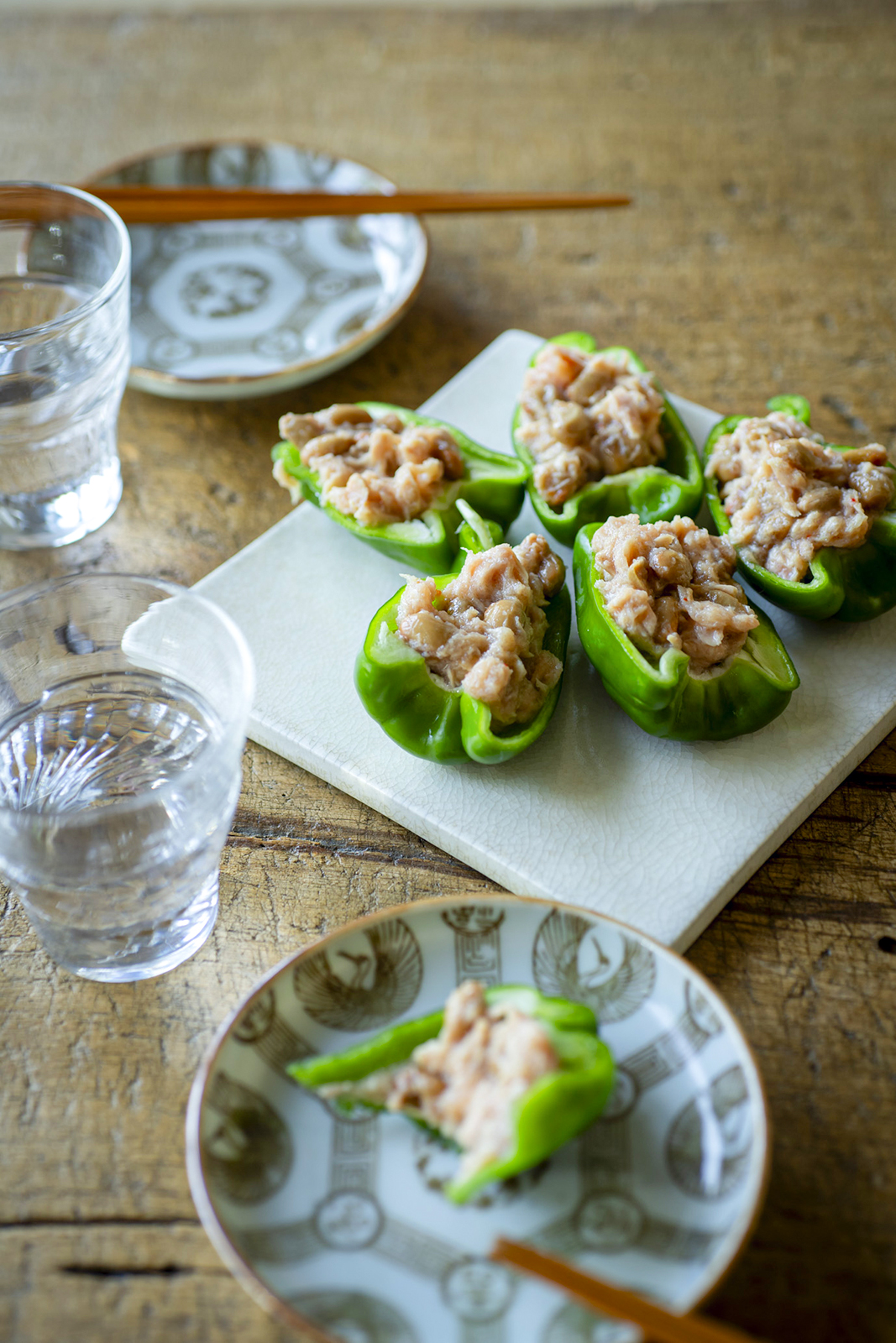 パリパリピーマンの納豆ッナ明太のせ