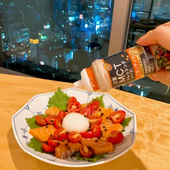 【ひんやり前菜】にんにくオイルで食欲アップ〈サーモン&夏野菜〉のおかずサラダ