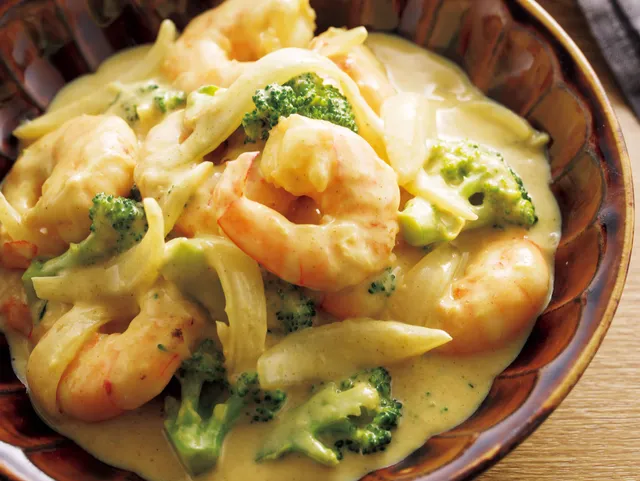 ご飯に合う、カレー味!ハフハフ食べたい『えびとブロッコリーのカレークリーム煮』