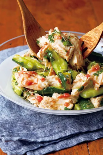 さっぱり味でもご飯が止まらぬ、魔法のレシピ『蒸し鶏とたたききゅうりの梅だれあえ』