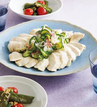甘酸っぱきゅうり&薬味で食欲アップ!『しっとりレンチン蒸し鶏』のレシピ【火を使わないで作れる】