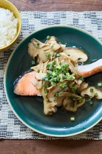 魚おかずが劇的に美味&楽ちん【湯煮】とは?茹でるだけ「鮭のバターポン酢きのこのっけ」