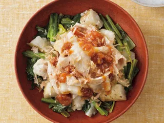 フライパンに入れるだけで、こなれた味!『豚バラと小松菜、長いもの梅だれ蒸し』
