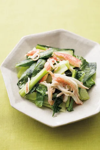 簡単なのに、おいしすぎる…!ポリ袋でもむだけ『小松菜とかにかまのみそあえ』