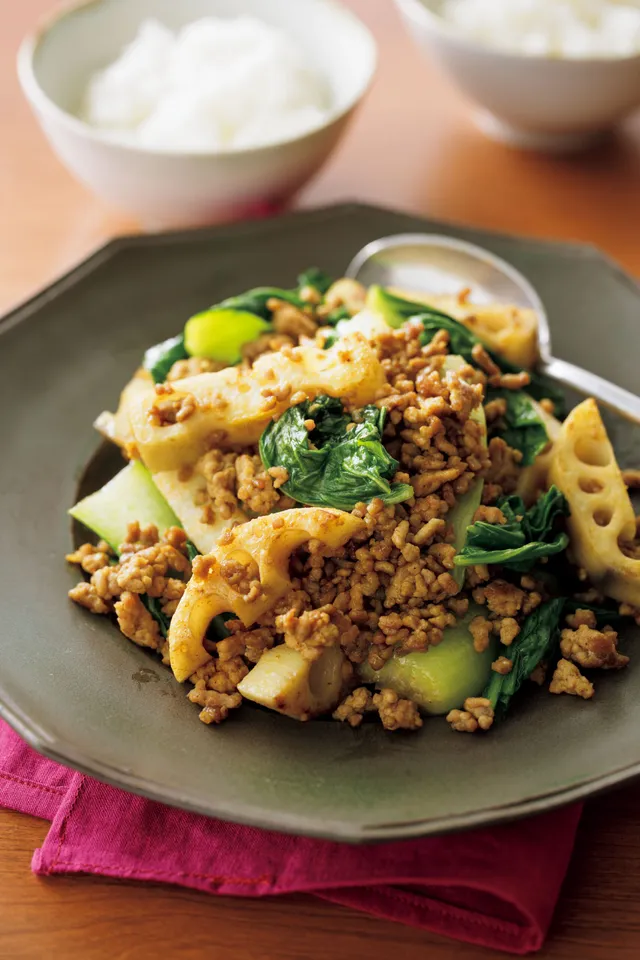 10分で新米が進む晩ごはん!『豚ひきとれんこんのカレーオイスター炒め』の作り方