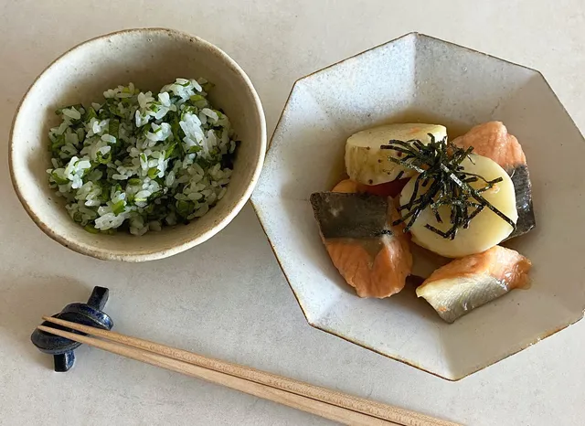 【長谷川あかりさんのレシピ】だしパックで『鮭と長いものだし煮』&『生春菊の菜めし』【体がよろこぶ簡単献立】