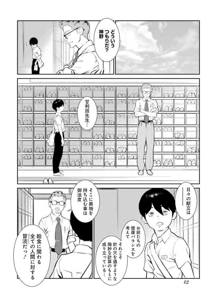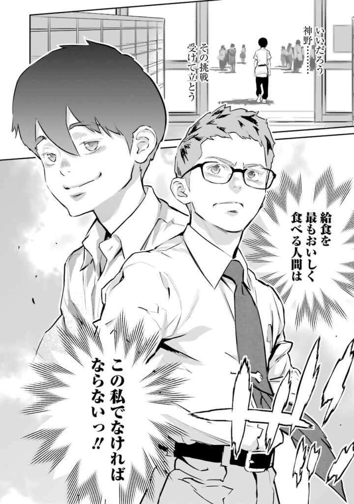 そんな彼に対し、同じく給食を愛する故に新たな食べ方を模索する中学生、神野ゴウが挑戦状を叩きつける!