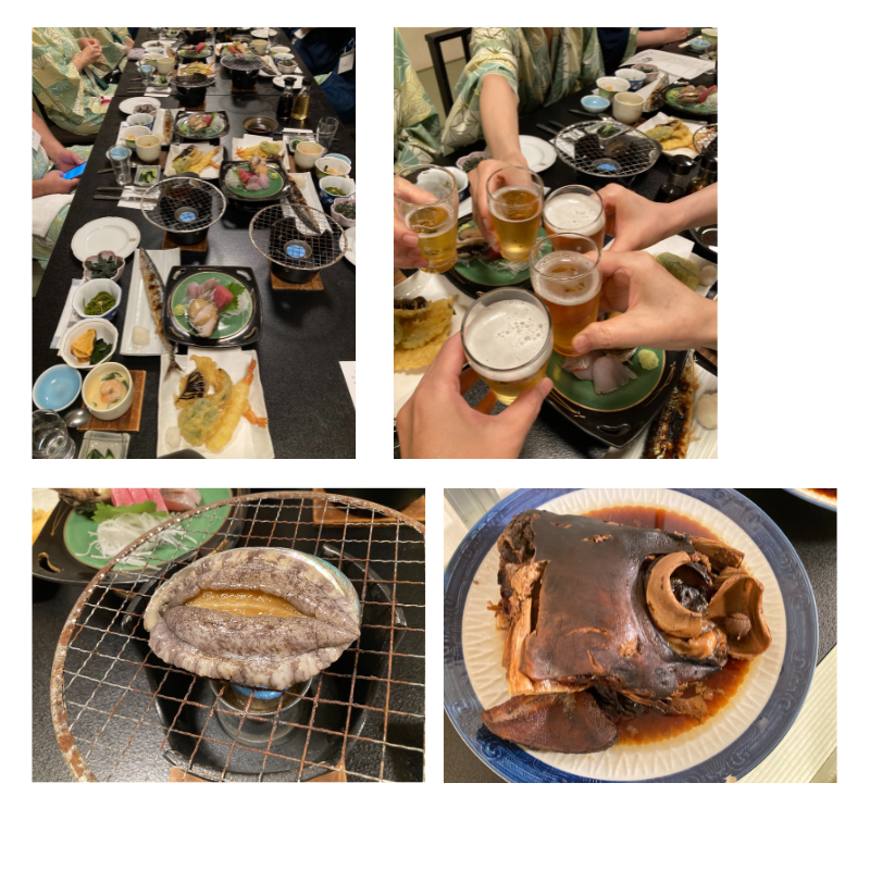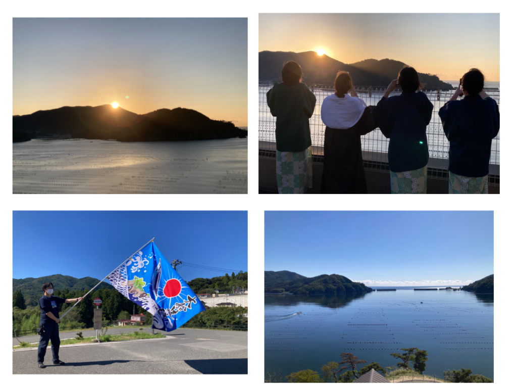 この大船渡温泉は、東日本大震災の時「美味しいものをお腹いっぱい食べて、温かい湯につかれば、身体も心が元気になった」という経験から地元を愛する漁師さんにより東日本大震災の復興のためにたてられた宿なんだそう。その想いが込められた旬の海鮮を楽しむ料理の数々が並ぶ大宴会。「ほかほか湯上りに、浴衣で乾杯!の宴会がしてみたかった」というハナコさんの号令で乾杯! 初対面のみなさまも、おいしいものが大好きでのんべい、という共通点があれば、あっとゆうまに打ち解けわいわい大盛り上がり、ツアー初日の楽しい夜は更けていくのでした。次の日の早朝、大船渡温泉からみた日の出の美しさとおだやかな凪の海も忘れられない旅の思い出に!