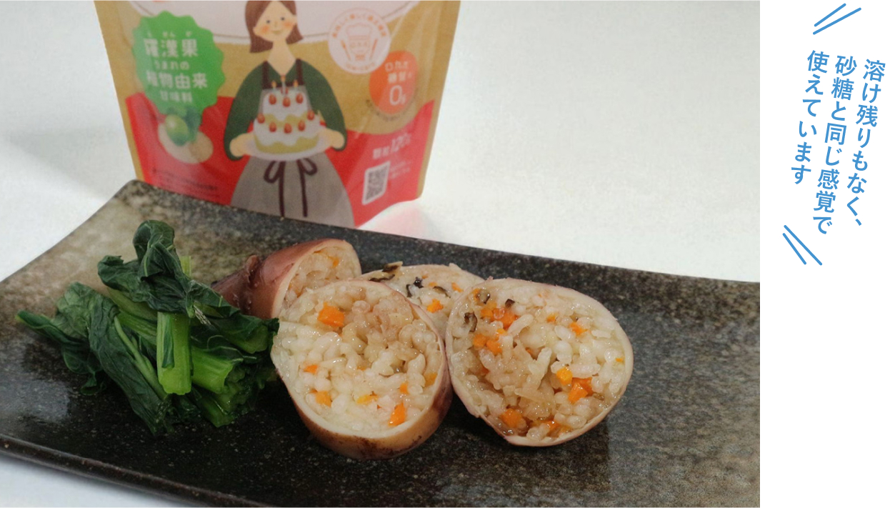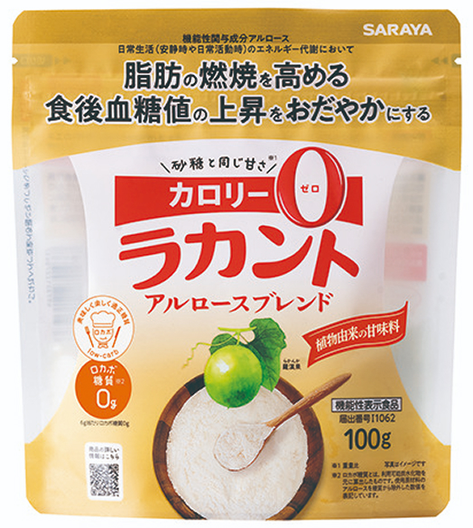 砂糖の300倍の甘さを持つウリ科の植物「羅漢果(ラカンカ)」の高純度エキスと、とうもろこし由来の甘味成分「エリスリトール」を使用した、植物由来の甘味料。砂糖と同じ甘さなので、砂糖と置き換えて使うことができます。カロリーゼロ・糖類ゼロで、糖質コントロールにぴったり。1995年の発売以来、糖尿病専門医や管理栄養士からも推奨され、今や世界24の国と地域で販売されています。
