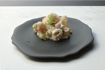 フルーツを使ったおかずも息子が食べてくれるのでよく作ります。水きりした豆腐に桃とぶどうを合わせた白あえ。汁けが少ない料理なのに、「ラカントS」顆粒がきれいに溶けてなじみました。