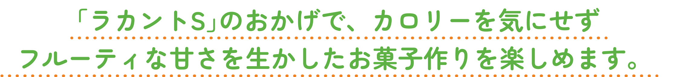 年齢を重ね、これまでと同じ量を食べていても体重増加が気になるようになりました。「ラカントS」は、自然由来なので毎日の食事に取り入れても安心。甘さにこくと深みがあり、香りも気に入っています。顆粒とシロップを調理工程に応じて使い分けられるのも便利。お菓子は味の満足度が変わらないどころか、むしろおいしい! なのにカロリーオフできていると知って、家族や友人も驚いています。