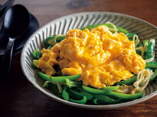 ピーマンとカレー味が相性抜群。途中でカレー粉をふれば、ドライカレー風に早変わり。半熟の目玉焼きをザクザクくずして、まろやかな卵黄をからめながら食べるのが最高です!