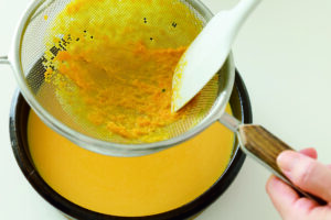 かぼちゃだけでの裏ごしはせず、プリン液を作ってからこせば、手軽です。