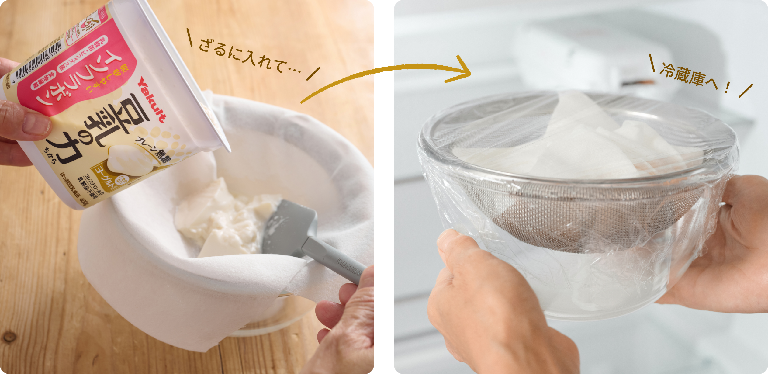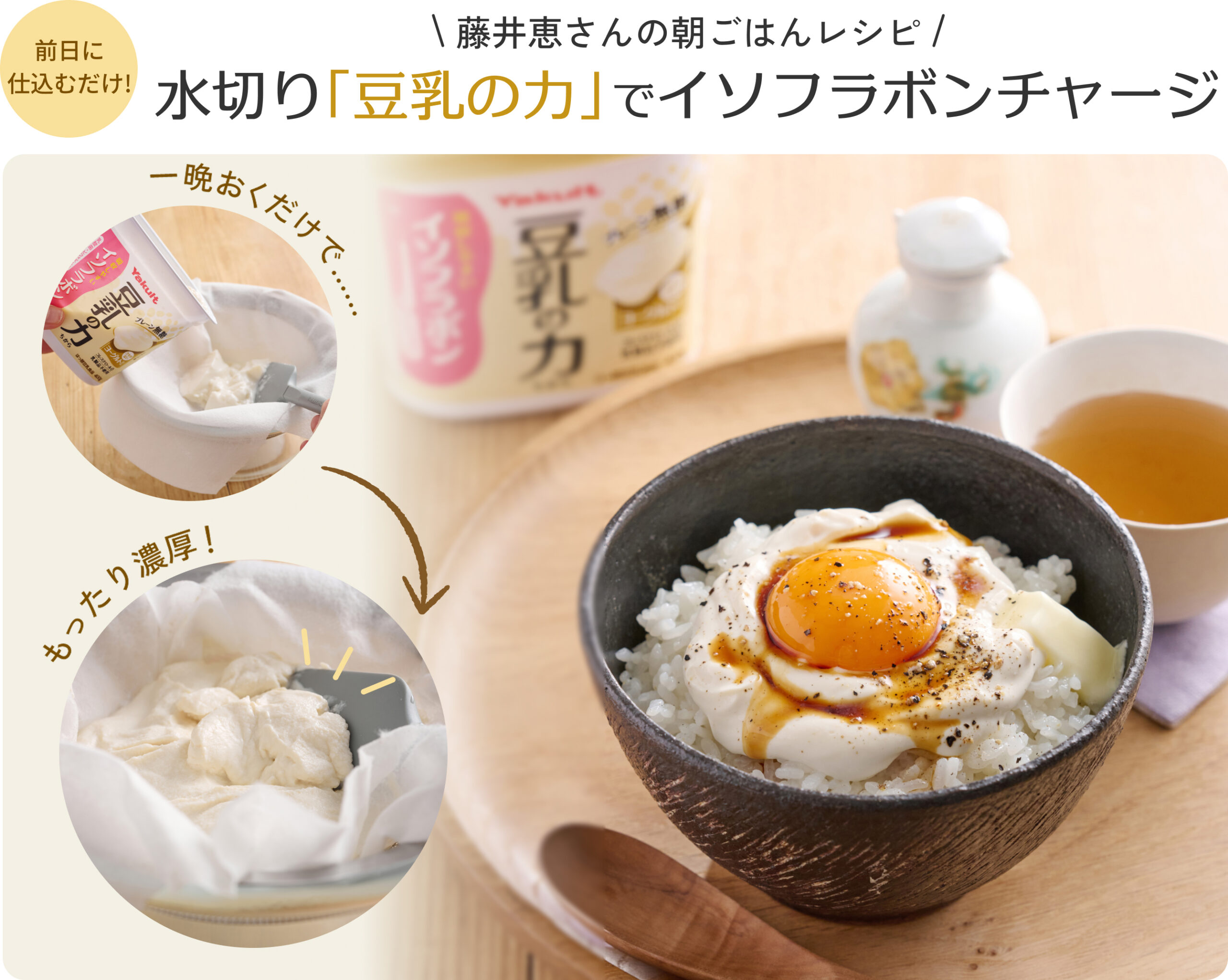 【ヤクルト「豆乳の力」で簡単朝ごはん】水切り「豆乳の力」でイソフラボンチャージ