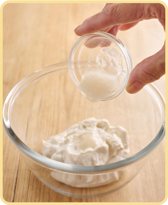 冷蔵で3~4日保存可能。ボールにたまった水分(ホエー)にも栄養がたっぷり含まれるので、スープなどに入れて活用して。