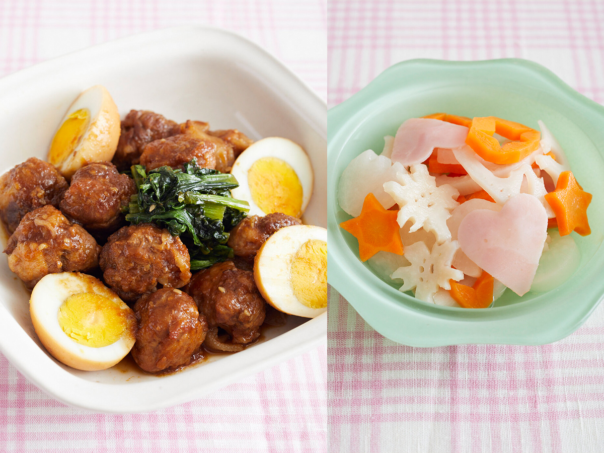 vol.4 毎日食べたい! 肉おかず&野菜おかず「豚こまだんごのこっくり煮」「型抜き野菜とハムの甘酢浅漬け」