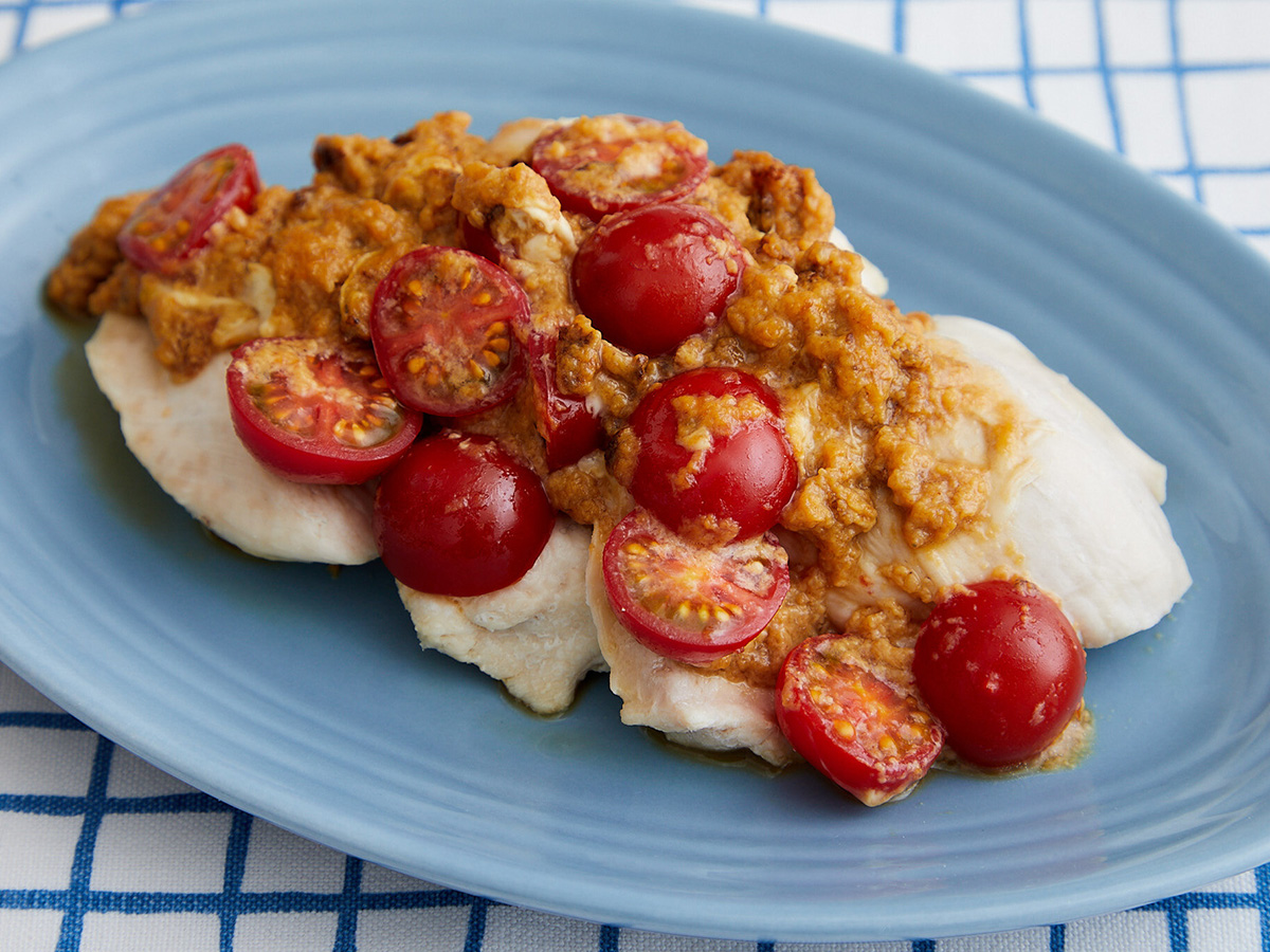 元気いっぱいスタミナメニューvol.2「蒸し鶏のミニトマトたまだれがけ」
