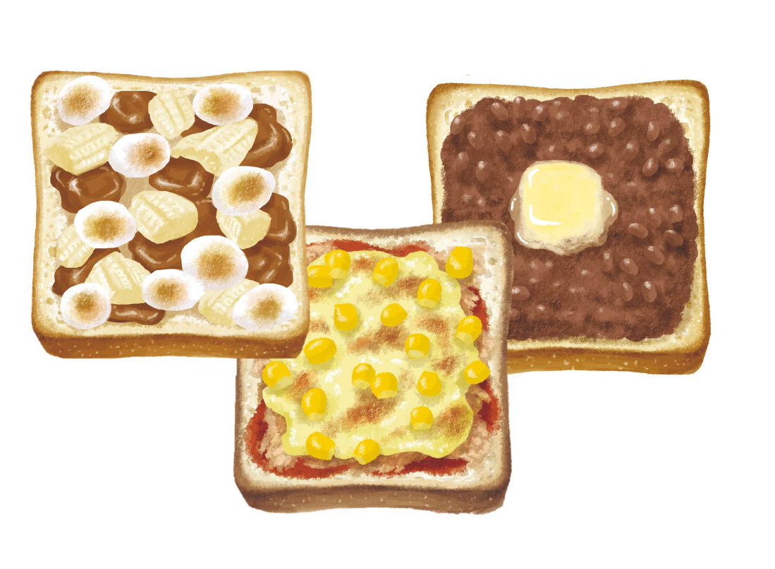 朝ごはんにおすすめのメニュー・のっけトースト。のっける具を替えたら、いろいろなおいしさを楽しめます。今回は、こどもが大好きなピザや、バナナチョコレート、あんバタートーストの3品のレシピを紹介!