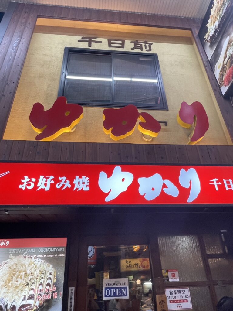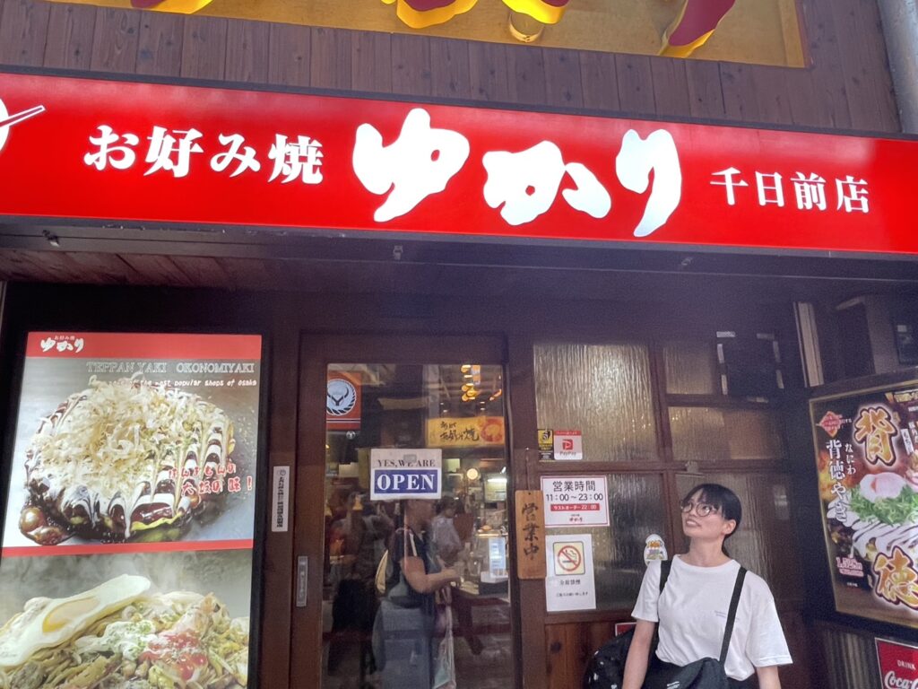 そう言ってはるちゃんが紹介してくれたのがこちら!『お好み焼 ゆかり』! お邪魔したのは千日前店さんです。外に飾られたおいしそうなお好み焼きの写真に、入る前から食欲が刺激されます。