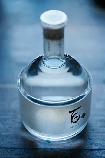 熊本県産の食用米「森のくまさん」と、球磨川の伏流水、3種の吟醸酵母を使用した全麹吟醸仕込みの原酒を、絶妙な比率でブレンドした究極の米焼酎。「上品でおだやかな味わいが食中酒に最適。とくにすしとの相性がよく、その繊細なうまみを引き立ててくれます」。HAKUTAKE ONLINE SHOPで購入可能(年間約3000本限定)。