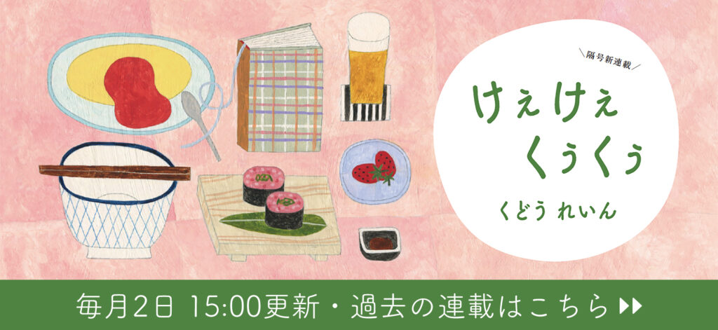 「けえけえ(食べな食べな)」「くうくう(食べる食べる)」盛岡在住の作家・くどうれいんさんが、おいしいもの好きなみなさんにお届けする、食エッセイです。