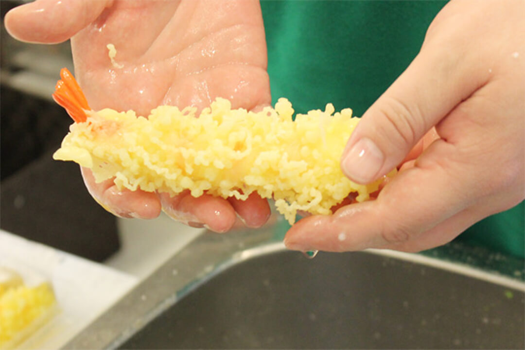 山いも(八王子市)」とえびで作った〈落とし揚げ〉を加えたすまし汁といっしょにめし上がれ! 濃いめの味つけのおにぎりと、あっさりとしたスープが相性抜群です。