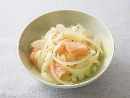 シャキッと玉ねぎに、ツナのうまみとスパイシーなカレー風味が絡む〈やみつきマリネ〉。