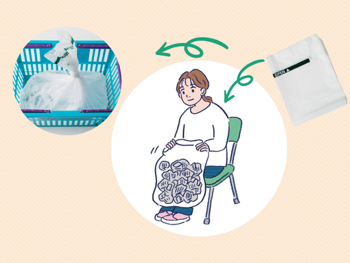辻さんが在宅避難を経験した際、気になったのがトイレのにおいだったそう。「消臭タイプのごみ袋の備蓄は必須。排泄物のにおいが家じゅうに充満するのを防ぐことができます」。