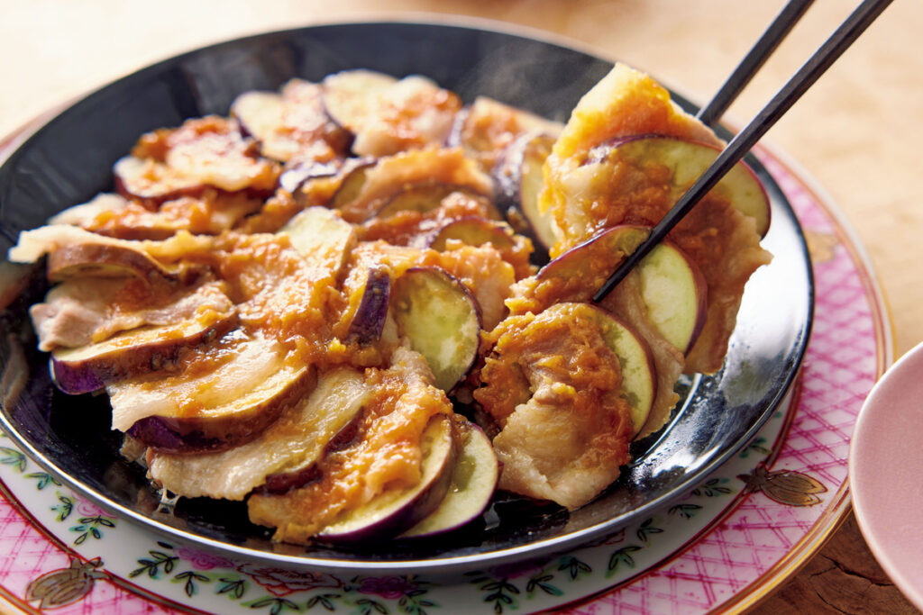 食べ応えも見栄えも抜群の『豚肉となすの重ね蒸し』。