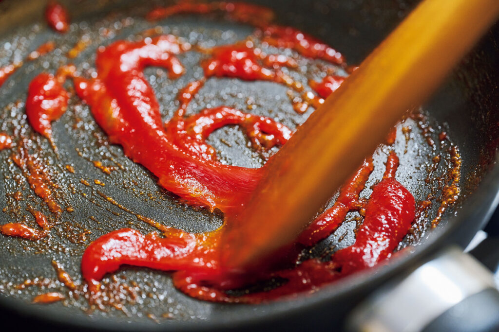 トマトケチャップ、焼いたことありますか? 〈カゴメ〉が今イチオシする手法「焼きケチャップ」は、炒めてから使うだけで味が一変。濃厚でコク深い風味が楽しめるんです。
