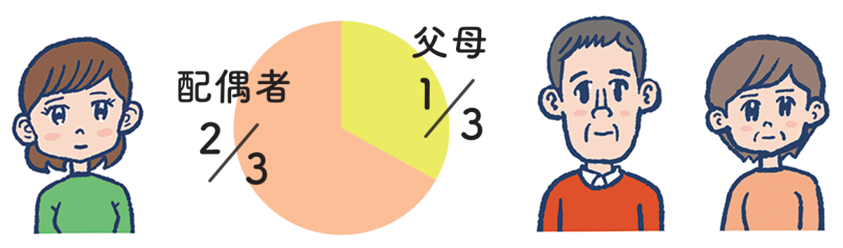 子どもはおらず配偶者と父母がいる場合 (第2順位) | ![]() | |