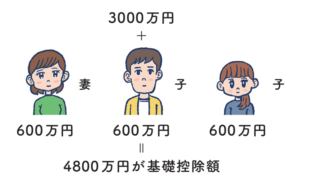相続税には非課税枠にあたる「基礎控除」があり、基礎控除額は、3000万円+(600万円×法定相続人の数)と決められています。