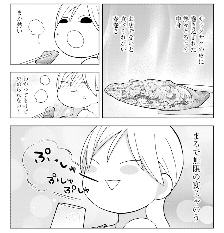 料理が大好きでたくさん作りたい野本さんと、たくさん食べたい春日さん。ふたりは日々、ごはんをともにする仲に。「女性=小食」「料理が上手な女性はいいお嫁さんになる」など、女性への偏見に屈せず、自分らしく生きるふたりがすてき。