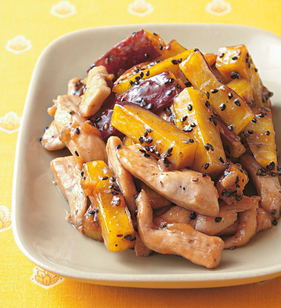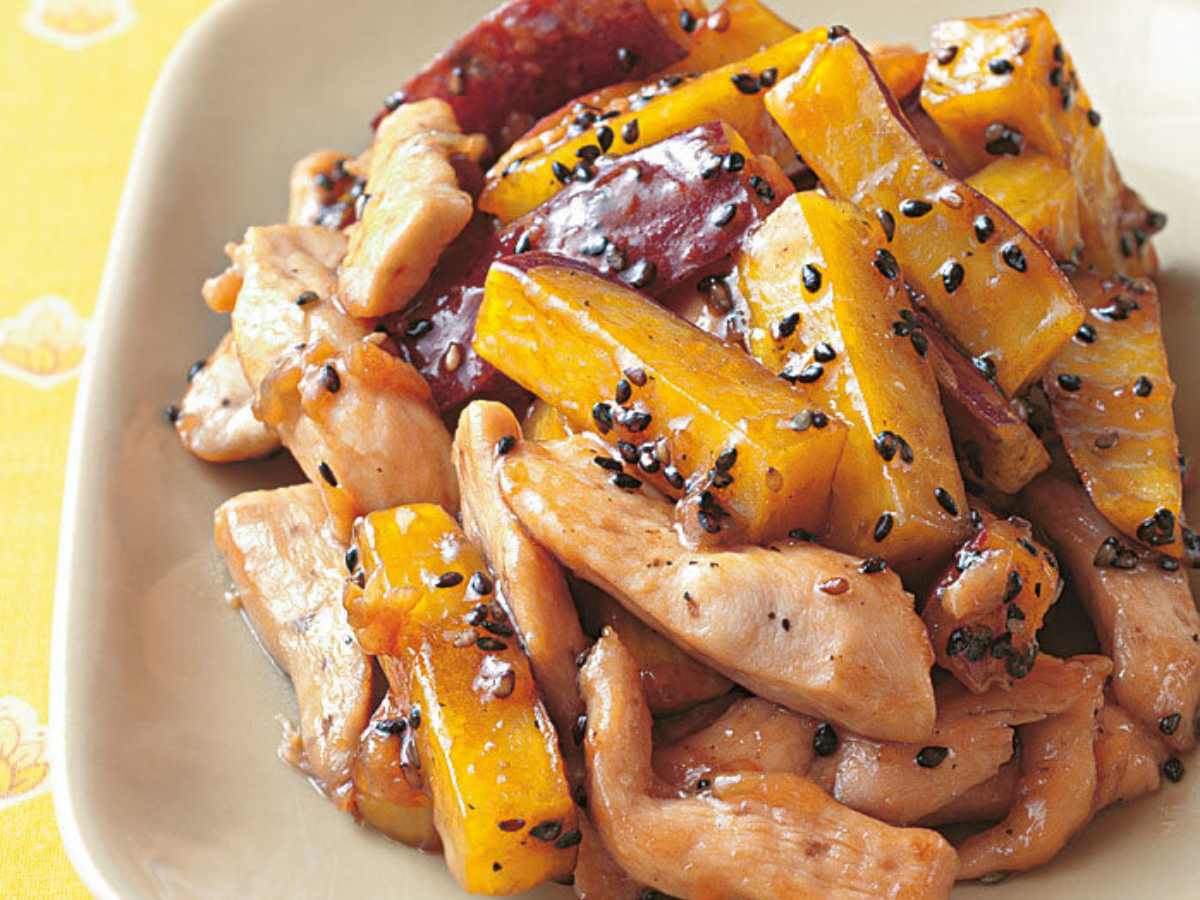 そんなさつまいもを使った定番おやつ・大学いもを、鶏むね肉でおかず仕立てに。甘じょっぱいたれがからんで、想像以上にご飯がすすみます!
