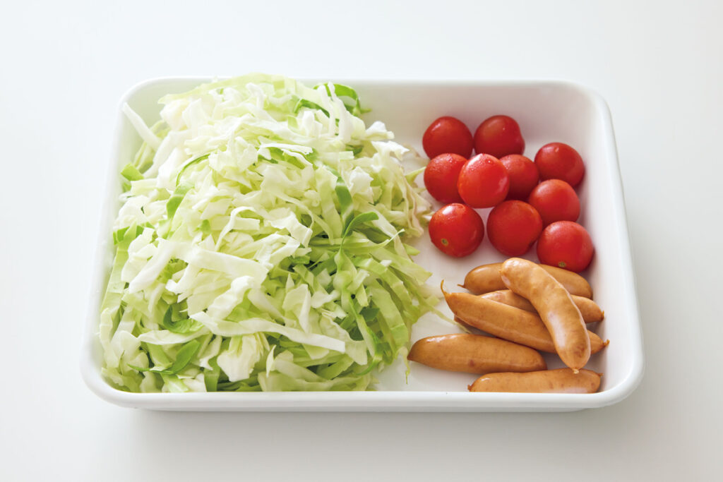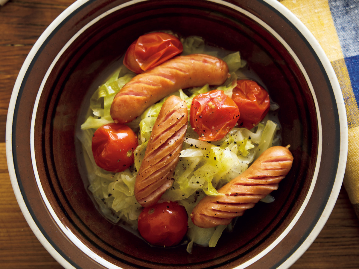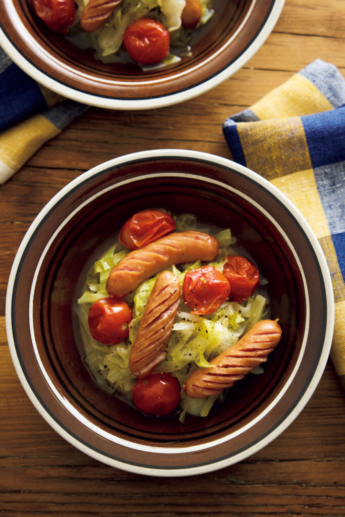 キャベツ1/4個があっという間に消える、ソーセージたっぷりのトマト煮。甘みと酸味の絶妙なバランスに、思わず「もう一口!」と手が伸びます。