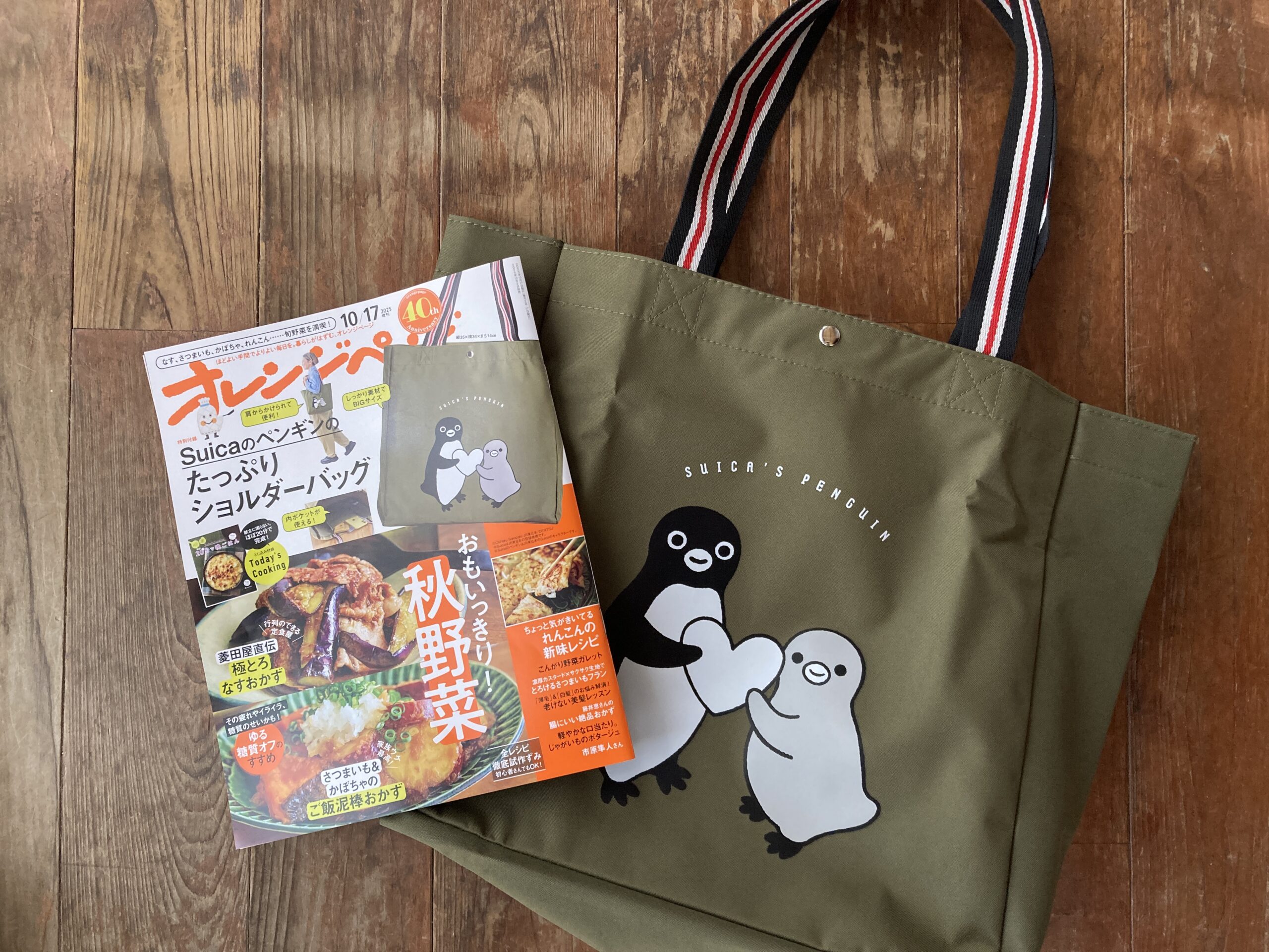 〈Suica〉のイメージキャラクター「Suicaのペンギン」と『オレンジページ』のコラボ付録が、10/17増刊号に今年も登場! 第3弾となる今回は、大きめサイズで使い勝手バツグンの「たっぷりショルダーバッグ」です。