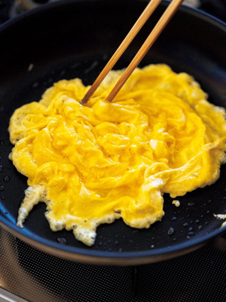 ふわふわの卵を味わいたいなら、油は控えず、レシピどおりの量を使ってみて。