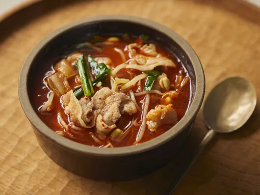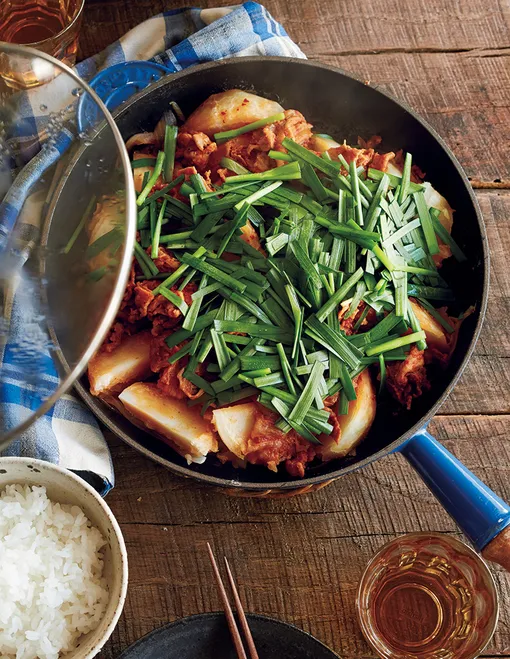 ご紹介するのは、フライパンひとつで簡単に作れる『豚バラ肉のキムチ蒸し』。豚バラのコクとキムチのうまみが野菜にじゅわ~っとしみ込んで、おかわり必至のおいしさ! 材料をフライパンに入れたらあとは蒸し上がるのを待つだけ……という手軽さも魅力です。