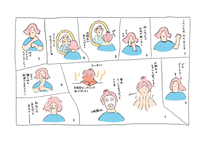 健康な肌の表面は、水分と皮脂がバランスよく保たれていますが、乾燥肌はこの両方が不足している状態。バリア機能が低下するため、外的刺激の影響を受けやすくなります。肌のキメが乱れ、カサつく、ゴワつくなど肌ざわりが変化し、さらに悪化すると赤みやかゆみ、ヒリつきを感じる敏感な状態に。自分の肌が乾燥しているかどうか、CHECKシートで確認を!