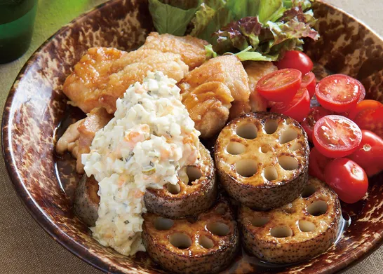 皮ごと使ってシャキホク食感!『れんこんのチキン南蛮風』のレシピ
