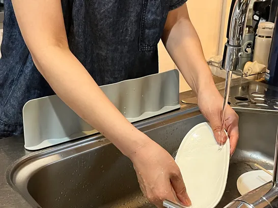【DAISO】洗いもので水はね問題、110円で解決。この『水はね防止パネル』を置けばいい!