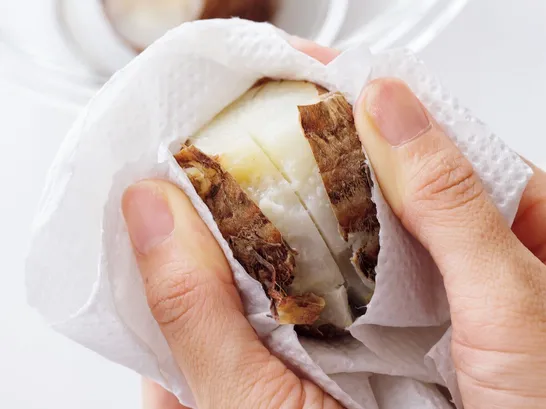 つるんと簡単、里芋の皮むきワザ【レンジで楽々・加熱まで完了!】