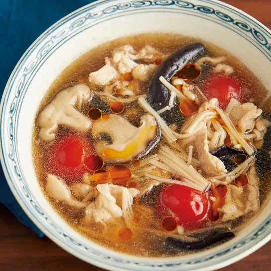 きのこたっぷりで大満足! 酸っぱうまい『豚バラときのこのトマト酸辣湯(サンラータン)』のレシピ