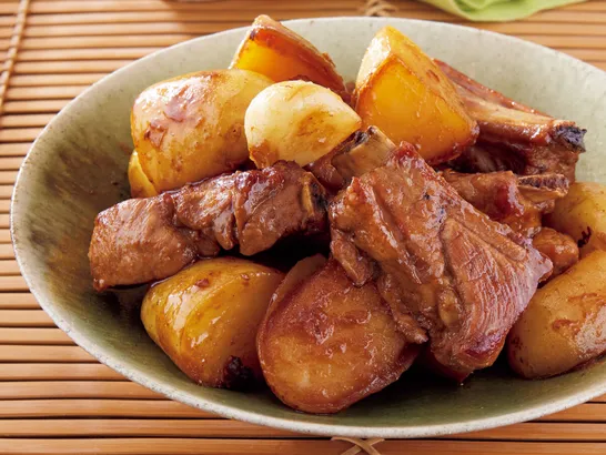 【フライパンひとつで時短レシピ】にんにく香る『豚スペアリブとじゃがいもの甘辛煮』