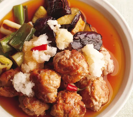 じゅわっと甘酸っぱい! なすの『揚げない南蛮漬け』のレシピ【豚こまを丸めてボリュームおかずに】
