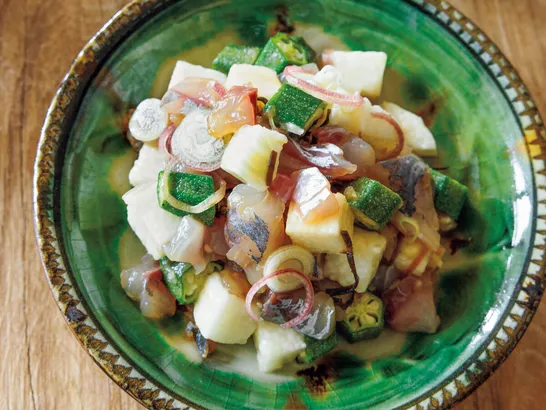 刺身をつかえば手軽!『あじの具だくさんなめろう』のレシピ【みょうが・長いも・オクラと】