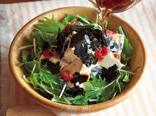 梅ドレッシングでさっぱり!『水菜と青じその豆腐サラダ』のレシピ
