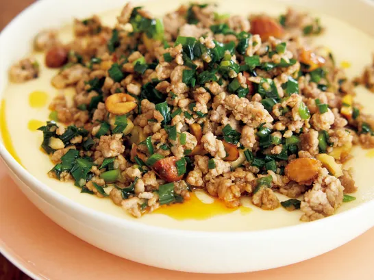 ふるふる食感×甘辛にらそぼろが最強! 『ジャンボ茶碗蒸し』のレシピ【フライパン蒸し】